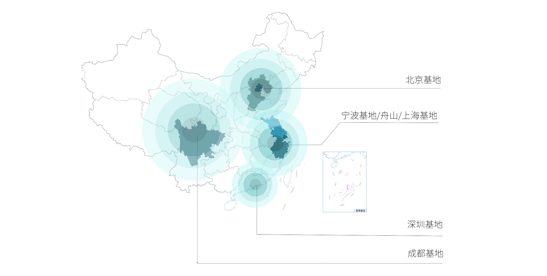 以宁波作为技术总部,以珠三角、长三角、京津冀、成渝等城市群为中心向四周辐射布局, 多点串联,逐渐扩大在东南沿海,华北,西南,华南沿海等重要地区的影响力。