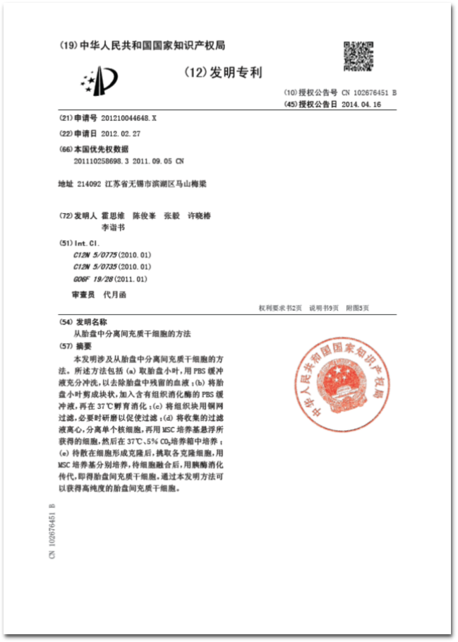 拥有全球领先的12+创新细胞全球专利注册和53+创新全球细胞专利申请